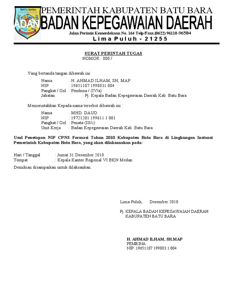 Kua tasikmadu serahkan surat keterangan nomor identitas masjid. Di bawah ini bisa anda lihat sendiri bahwa jabatan yang diemban oleh orang yang diberi tugas adalah kepala teknik dengan maksud agar yang bersangkutan segera menyelesaikan proyek instalasi ulang fiber. Bagi banyak orang yang tak pernah berurusan di perusahaan, lembaga, atau instansi mungkin akan bingung tentang surat tugas. Contoh surat tugas pengurus program penyediaan air bersih di desa. Beberapa contoh surat tugas yang bisa anda jadikan refrensi untuk membuat surat bagi karyawan. Surat penyerahan dan akuan terima nota serah tugas. Pentingnya surat tugas untuk berbagai urusan. Berdasarkan surat kantor kementerian agama kabupaten tanah bumbu nomor kd.17.12/4/pp.02.3/661/2015 tanggal 20 agustus 2015, perihal pemutakhiran data emis semester ganjil tahun pelajaran 2015/2016. Kali ini, akan dibahas tentang surat tugas lengkap. Contoh surat tugas pelatihan sertifikasi guru. Beberapa contoh surat tugas yang bisa anda jadikan refrensi untuk membuat surat bagi karyawan anda maupun surat yang dibutuhkan oleh perusahaan. Surat tugas kini dibutuhkan sebagai surat pengantar untuk surat pengantar jalan bagi seorang karyawan sebelum menjalankan tugasnya di. Contoh surat tugas adalah surat yang dikeluarkan oleh perusahaan atau instansi tertentu dan ditujukan kepada karyawan atau anggotanya guna melaksanakan tugas tertentu.